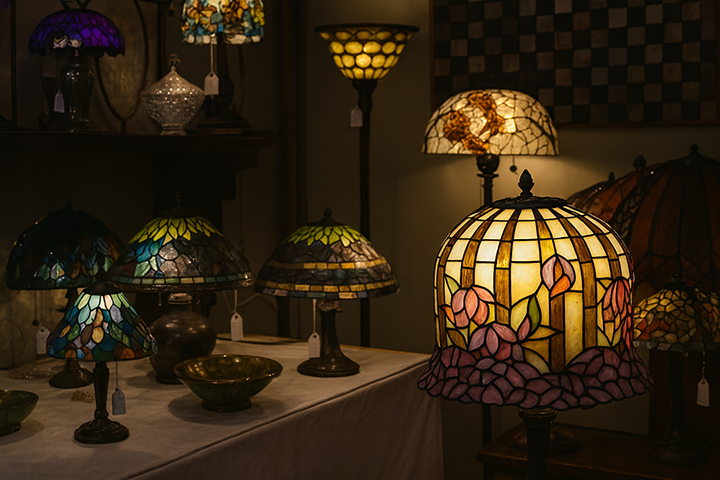 In a three-floor antique shop, I was immediately captivated by a display of lamps. I was fascinated by the light in the room. Similar to people, lamps can bring clarity, warmth, and comfort simply by being present. The complexity of the stained glass drew me in, serving as an extended metaphor for the way each individual has their own personality, values, and experiences.